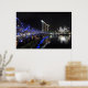 Helix Bridge lit up along Singapore River Marina at Night with water reflection poster