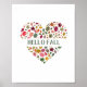 Presentamos nuestro colorido y encantador poster "Hello Fall", una deliciosa celebración de la vibrante temporada de otoño. Este poster, repleto de cálidos y acogedores tonos, acoge con satisfacción la llegada de la caída de una manera alegre y animada. Con un diseño encantador y artístico, este poster capta la esencia de la belleza del otoño, mostrando el esplendor de las hojas coloridas, las bufandas acogedoras y la alegría de las calabazas. Cuelgue en su casa para abrazar la magia y nostalgia de esta maravillosa temporada. Ya sea por su propia decoración o como un regalo atento, nuestro poster "Hello Fall" seguro que alegrará cualquier espacio y lo llenará con el alegre espíritu del otoño. ¡Acepta las estaciones cambiantes y bienvenido caer con una ráfaga de colores y emoción!