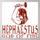 Hephaestus, el dios del fuego, especialmente el fuego del herrero, era el patrocinador de todos los artesanos, principalmente los que trabajaban con metales. Conocido como el dios cojo, Hephaestus nació débil y paralizado.