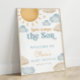 This "Here comes the son" baby shower welcome poster combines boho charm with a retro flair, making it an ideal choice for your sunshine-themed baby shower with yellow and blue tones.
