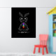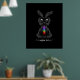 Simpático y caprichoso, lindo conejito negro con brillantes ojos de estrellas y brillante alma arco iris, meditando en una pose de yoga sentada sobre un negro como fondo nocturno, puedes editar para cambiar a cualquier color que quieras. Agregue un nombre, frase favorita u otro texto personalizado acentuado con estrellas. ♡ Idyllfire