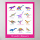 Póster Hermosa acuarela de dinosaurios con nombres de Pos