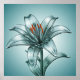 Una imagen cautivadora de un majestuoso lirio de vidrio, es pétalos translúcidos brillando con tonos vibrantes. El lirio se erige alto y elegante sobre un fondo neutro, cuya delicada forma se ve resaltada por los detalles intrincados de los cristales. La imagen evoca una sensación de serenidad y belleza, mostrando el arte de los golpes de vidrio.