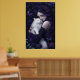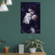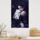 Hermosa mujer gótica y su Poster de gato blanco. © Dark Heart Desires. Esta poster tiene una hermosa mujer gótica con el pelo púrpura que está abrazando a su gato blanco entre flores y mariposas.