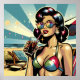Póster Hermosa Mujer Pinup con una Cola en la playa