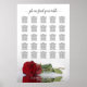 Esta bonita tabla de asientos de 25 bodas de mesa incluye asignaciones de mesa para 250 comensales en los 10 asientos tradicionales por mesa. El diseño es romántico y elegante, con una sola rosa roja de tallo largo que refleja una piscina de agua con olas y olas. El título dice: Por favor, encuentre su mesa, y está escrito en sofisticada caligrafía de escritura. Hay espacio para los nombres de la pareja y la fecha del boda a continuación. Una forma maravillosa de ayudar a sus huéspedes a encontrar sus asientos y, al mismo tiempo, añadir un toque de elegancia a su recepción de bodas.