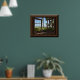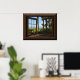 Este poster cuenta con una bella escena de palmeras tropicales y del océano a través de una ventana abierta.