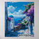 Poster griego Santorini, elegante y de moda, que muestra la arquitectura única y las vistas a la costa de la isla griega. Un gran recuerdo y una idea de regalo para todos los turistas.