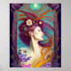 Póster Hermosas flores verde azuladas de estilo Art Nouve