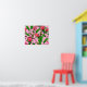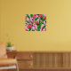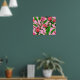 Póster Hermosas hojas verdes tropicales con flores rojas