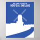 Hermoso Norfolk Windmill retro viajes afiche de arte impreso en azul.