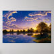 Hermosa puesta de sol nubes celeste agua árboles sol poster moderno y clásico