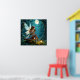 Un cuadro mural con temática de cuento de hadas, en el que se ve un hada colocada sobre un hongo en un bosque encantado, iluminado por farolillos que beben una taza de café caliente. Los árboles de los bonitos están cubiertos de luces de hadas y la luna llena brilla a través de las ramas de los árboles.