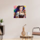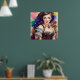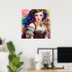 Hermoso Poster Chica Steampunk. Bonito fondo acuático en rosa, morado, verde, azul y amarillo. A los amantes del arte les encantará tener esto colgado en la pared.