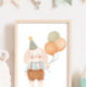 Póster Hermoso dormitorio de bebé con conejo rosa, nube y
