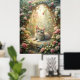 Póster Hermoso Gatito en el Jardín Rosa (Shabby Chic)