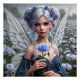 Un hermoso hada de cabello azul con alas plateadas con un vestido azul bonito y joyas de zafiro encierra una sola tostadora mientras está de pie en un campo de maestrías.
