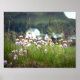 Un hermoso paisaje escocés con flores silvestres en primer plano, campos, casas y colinas y montañas que se desvanecen a lo lejos. Diseñado a partir de una fotografía original tomada en Easdale, Escocia, un lugar fabuloso para visitar si tiene la oportunidad de viajar por allí.