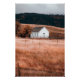 El Design presenta un único edificio de granjas blancas situado en un prado de otoño en Dakota del Sur, rodeado de árboles de colores caídos al pie de una montaña cubierta de vegetación. Arte original de Featherfall Studio.