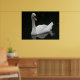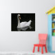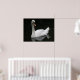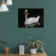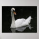 Este poster muestra una fotografía de un hermoso cisne blanco. El cisne es un cisne mudo macho, se puede decir que es macho por el bulto negro en el pico. El cisne está deslizándose con gracia a través del agua en un lago tranquilo.