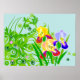 Agradable poster o impresión con fondo azul, vegetación, hojas e irlandeses. Colorido y hace un regalo perfecto.