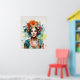 Hermoso retrato Chica con flores en la cabeza de su Poster