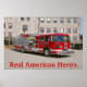 Un Poster de Camión de Fuego con las palabras Héroe Americano real para la pared de personas que aprecian el peligro que corre nuestro Héroe Bombero de protegernos todos los días.