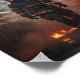 Honor the bravery and dedication of our first responders with this incredibly powerful and heroic Firefighter Poster! This striking image captures a lone firefighter, fully equipped in protective gear and oxygen mask, walking purposefully through a scene of controlled fire and glowing embers. In the background, a majestic American flag hangs, subtly illuminated, adding a profound sense of patriotism and sacrifice.