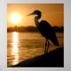 En la silueta de la orilla se ha colocado una garza contra una puesta de sol abrasadora.