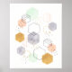 Hex Scatter I de Gabrielle McClure. Hexagones de varias formas y diseños esparcidos por un fondo blanco.