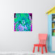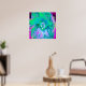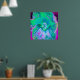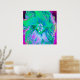 Póster Hibiscus psicodélico retro verde y rosa caliente