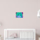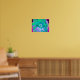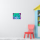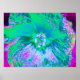 Póster Hibiscus psicodélico retro verde y rosa caliente
