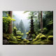 Amid lush forest, an ancient pagoda rests in silence, guarding forgotten secrets. Nature embraces the structure with moss and soft light, creating a scene of peace and contemplation.