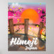 Himeji Japón poster de flores. hermoso afiche de viaje personalizado japonés rosa.