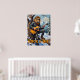 Esta dinámica obra de arte retrata a un león, luciendo sin esfuerzo fresco con gafas de sol y una chaqueta de cuero, "triturando" magistralmente una guitarra eléctrica mientras se coloca en un tronco cubierto de nieve. La escena se despliega en un bosque como el Ártico con árboles desnudos y verduras distantes bajo un cielo texturado iluminado por la luna. El grueso y expresivo deterioro crea una textura tangible, haciendo que la declaración "Rock or Die" resuene con la energía cruda de la actuación en un ambiente duro y frío.