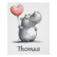 Este adorable ilustracion cuenta con un encantador hipopótamo personalizado con un globo en forma de corazón. La alegre expresión del hipopótamo y los colores vivos hacen de este un lugar acogedor y encantador. Personalízalo con un nombre para crear un regalo único para un ser querido.