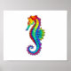 Arco de arcoiris, caballito de mar poligonal sobre fondo blanco. Tatuaje brillante.