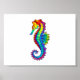 Arco de arcoiris, caballito de mar poligonal sobre fondo blanco. Tatuaje brillante.