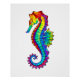 Arco de arcoiris, caballito de mar poligonal sobre fondo blanco. Tatuaje brillante.