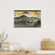 Póster Hiroshige - Vista nocturna de un templo en las col