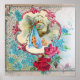 Elegante, colorido, vibrante diseño floral de estilo vintage con un bebé y una cigüeña voladora entre las hermosas rosas romanas, rosas rojas, verde azuladas flores de primavera azules de Bulgan Lumini (c). Fácil de personalizar con tu propio texto e inizials para duchas de bebé, fiestas de cumpleaños para niños, o casi cualquier evento que quieras!