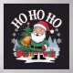 Un diseño Navidad con el texto "Ho Ho Ho Ho". Hay un Santa Claus con un traje verde y un gorra rojo