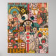 Se trata de una imagen de tapicería abstracta, vibrante e intrincada, con una mezcla de diseños florales, patrones de mosaico, formas geométricas y una cara prominente en el centro, que refleja una mezcla de naturaleza, arte y emoción humana en un estilo de mosaico.