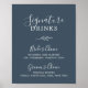 Esta mínima pizarra azul firma bebidas poster es perfecta para una boda elegante. El diseño presenta una sencilla silueta de vegetación, de un azul oscuro y un estilo minimalista clásico.