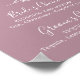 Esta mínima señal de poster de bebidas de malva es perfecta para un boda boho. El diseño presenta una sencilla silueta de hojas verdes de un romántico color rosa violeta con un minimalista estilo bohemio-jardín.