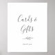 Este mínimo de tarjetas grises oscuras de la hoja y el signo de los regalos es perfecto para una elegante boda o una ducha de novia. El diseño presenta una sencilla silueta de vegetación en gris carbón vegetal con un estilo minimalista clásico. La línea de texto al final del cartel puede ser personalizada con la fecha, los nombres de la novia y el novio, o un mensaje corto como "Gracias". Este signo se puede usar para un boda o para cualquier evento o fiesta.