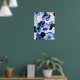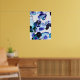 Arte acuático original con hojas de goma Eucalyptus en dólares plateados en colores plateados azul celestial. Diseño follaje australiano.