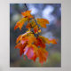 Un vistazo de cerca a algunas hojas de arce rojas y naranjas con un fondo borroso.