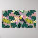 Póster Hojas tropicales, flores y pájaro toscano sin sold