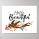 Hola Hermosa Antler y la impresión de arte Flowers será impresionante en cualquier habitación - desde la gran habitación hasta la guardería. El antler y las flores están pintadas con acuarelas. El texto negro complementa el diseño.